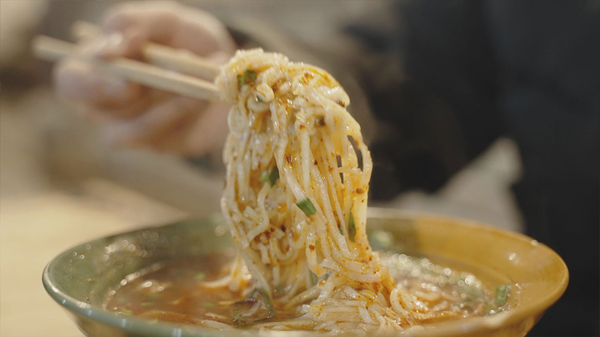 陝西人吃麵很講究,棍棍麵和扯麵,口感各有千秋,是麵店最常提供的兩個麵種,「蝦醬麵」則是另外一種風格,秦椒增香,新疆線椒添辣,散發出海米的自然甜味。老陝喜食大塊牛肉澆頭,吃麵時肯定要配蒜。油潑辣子...
