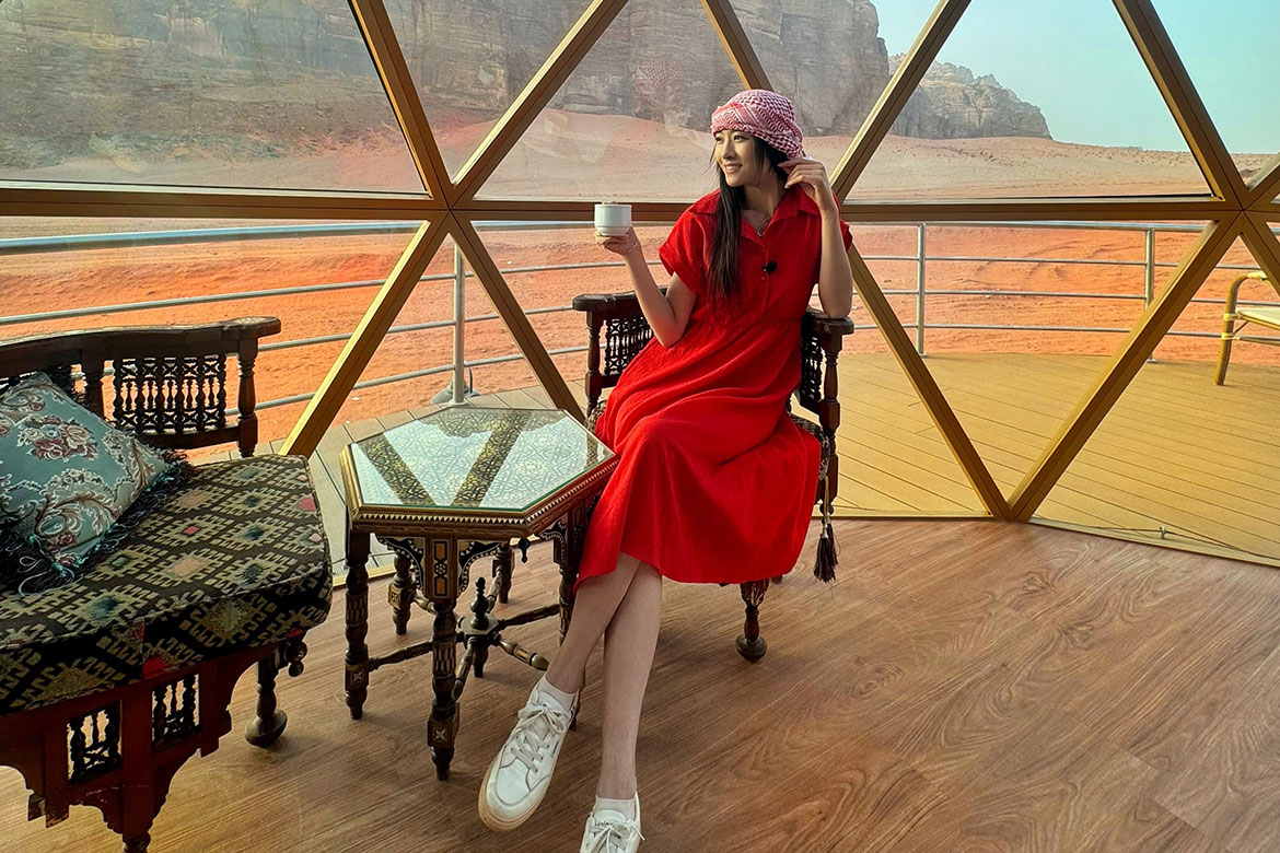 火星我來啦!這一集凱晴前往全地表最像火星世界的月亮谷(Wadi Rum)展開一場驚天動地的深度遊!在貝都因導遊的帶領下騎著駱駝前進充滿古代銘文的峽谷中,更體驗在廣大紅色沙丘上的的刺激衝沙活動,還享用最道地的地下烤肉以及傳統遊牧民族住宿生活。最後當然不能錯過從高處俯瞰整片紅色大地的機會,搭乘熱氣球欣賞日出的美景,和在全月亮谷最高級的帳篷度過最浪漫的星空之夜。